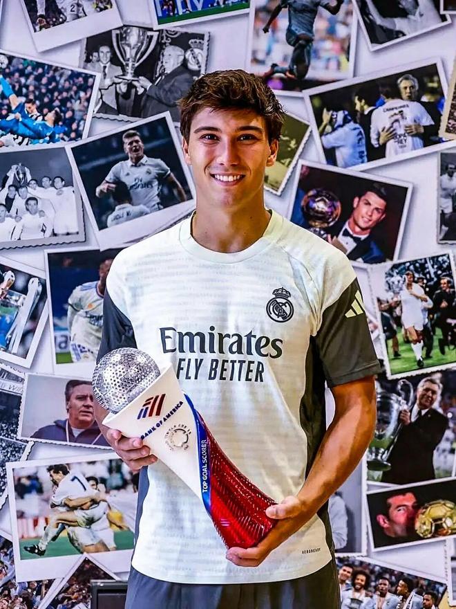 “貢薩洛是真正意義上的馬德里主義者!”在貢薩洛·加西亞上演完美帽子戲法后,伯納烏南看臺高聲唱響歌曲,將貢薩洛的名字一遍遍喊出。《阿斯》報的皇馬死忠主編龍塞羅,也在5比1擊敗貝蒂斯賽后更新社交媒體動態,他發出的照片上一家人高舉著貢薩洛的16號皇馬球衣,“這一家人都是皇馬季票持有者,照片上的孩子貢薩洛·莫雷諾今天在伯納烏球場首次身穿16號球衣,目睹了和自己同名的球衣主人在伯納烏上演帽子戲法。”