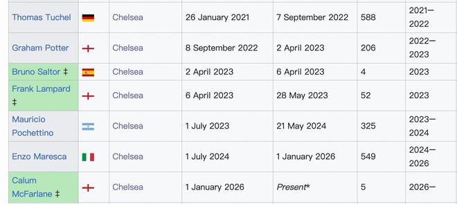 在任時(shí)間5天,戰(zhàn)績?yōu)?平,勝率0%,據(jù)悉麥克法蘭還將指揮切爾西客戰(zhàn)富勒姆的比賽