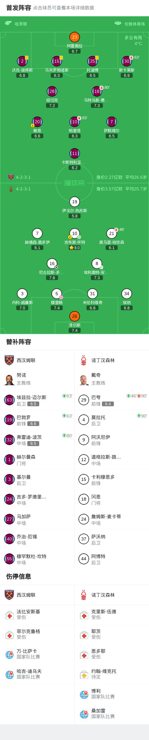 諾丁漢森林2-1逆轉西漢姆聯,多明格斯破門,吉布斯-懷特點射,穆里略烏龍