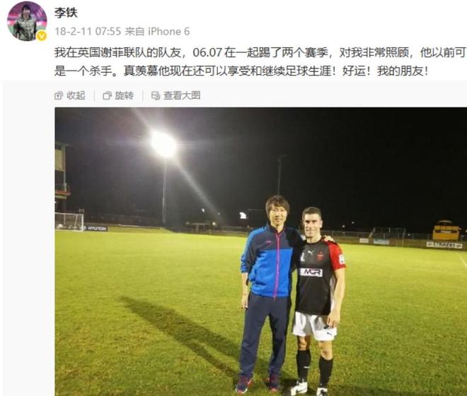 2018年冬訓,當時李鐵擔任武漢卓爾主帥,率隊在澳大利亞進行熱身賽。第六場熱身賽,武漢卓爾4-1擊敗臥龍崗狼隊,李鐵與謝菲聯老隊友尼克-蒙哥馬利相逢,當時蒙哥馬利還未退役,效力的正是武漢卓爾熱身賽對手臥龍崗狼隊。李鐵在社媒曬出合照,他寫道:“我在英國謝菲聯隊的隊友,06.07在一起踢了兩個賽季,對我非常照顧,他以前可是一個殺手。真羨慕他現在還可以享受和繼續足球生涯!好運!我的朋友!”事實上,在謝菲聯效力時期,蒙哥馬利和孫繼海也是隊友。