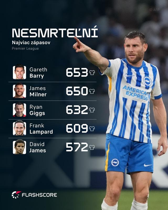 截至目前,英超歷史出場次數最多的紀錄仍由名將加雷斯-巴里保持,為653場。如今,米爾納距離這一紀錄僅差3次出場。