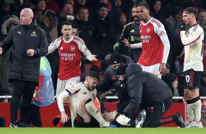 在場內接受治療后,布拉德利被擔架抬離球場,離開球場時拄著拐杖,左膝佩戴護具。