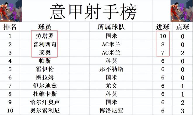 射手榜方面,勞塔羅10球繼續領跑,普利西奇今天未能進球,還是8球排在第2。萊奧打入絕平 一球,超過圖拉姆,伊爾迪茲,恰爾汗奧盧等人,7球獨居第3。