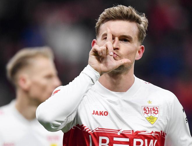 昨天多特客場壓哨絕平法蘭克福,大概率要被拜仁拉大到2位數的分差,今天勒沃庫森倒是有機會縮小和多特的差距,沒想到他們卻在自家的拜耳競技場被揍了一頓。開場后斯圖加特反客為主展開高效進攻,僅僅6分鐘,斯圖加特中后場快速反擊,連續的精妙配合,昂達夫中圈左側接球往前推進后送出手術刀式直塞,勒威林插上突入禁區獲得單刀良機,面對出擊的門將弗萊肯,勒威林撩射得手,斯圖加特1:0取得夢幻開局。